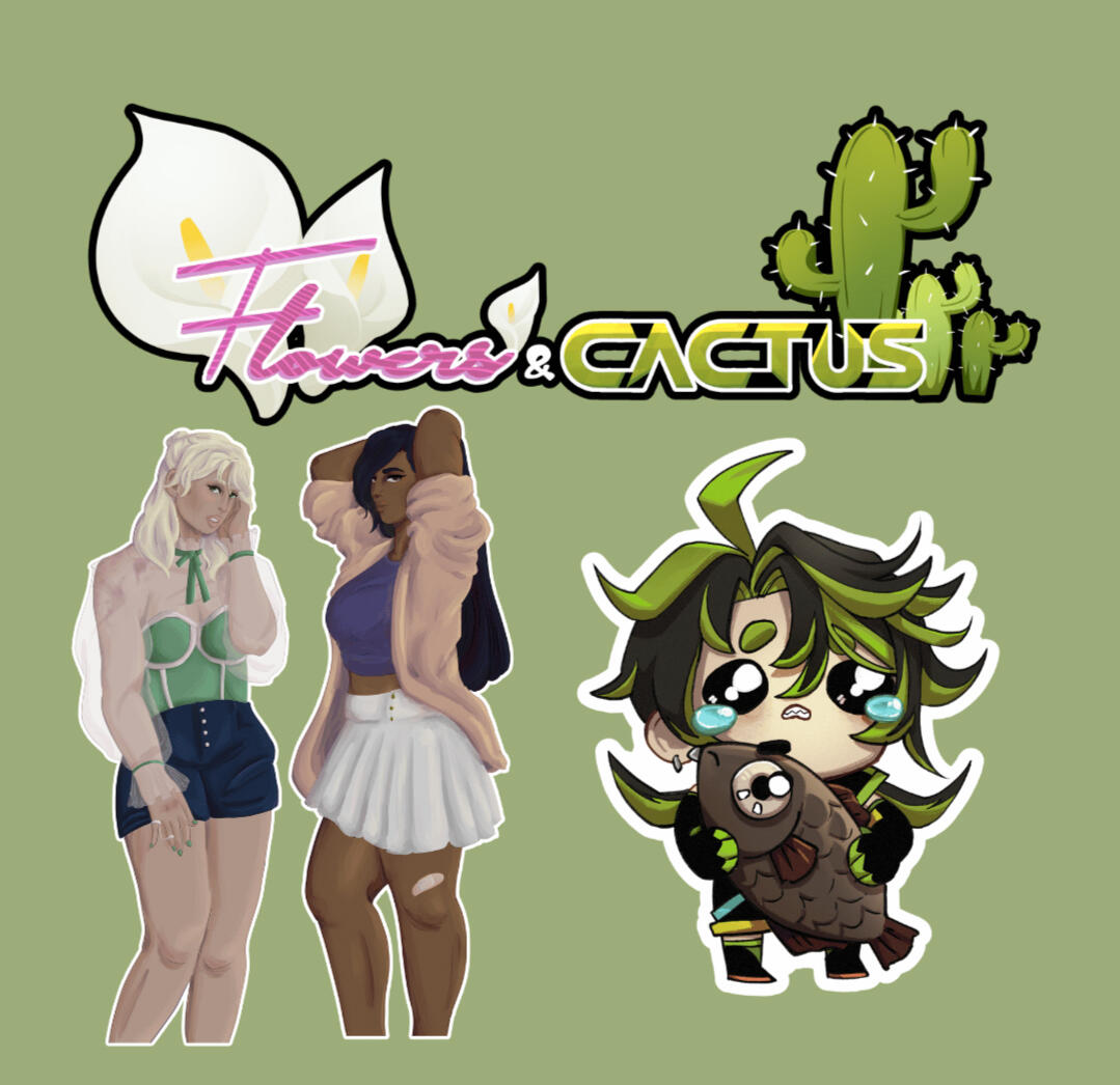 Cactus Flower Studios is the joint art studio of MadCactusSoda and FlowersForAbel! Cactus is a graduate of the College Of Creative Studies and a full time artist, illustrator, and webcomic creator. Abel is a webnovel writer, UW art student, and merch artist.Previous Cons